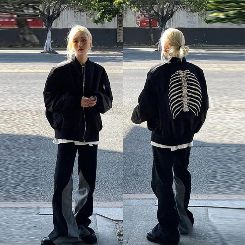 Abrigo gótico negro con esqueleto streetwear