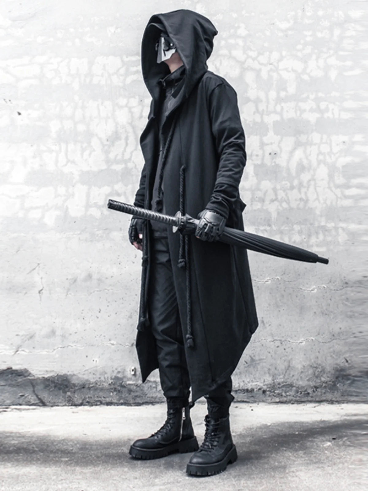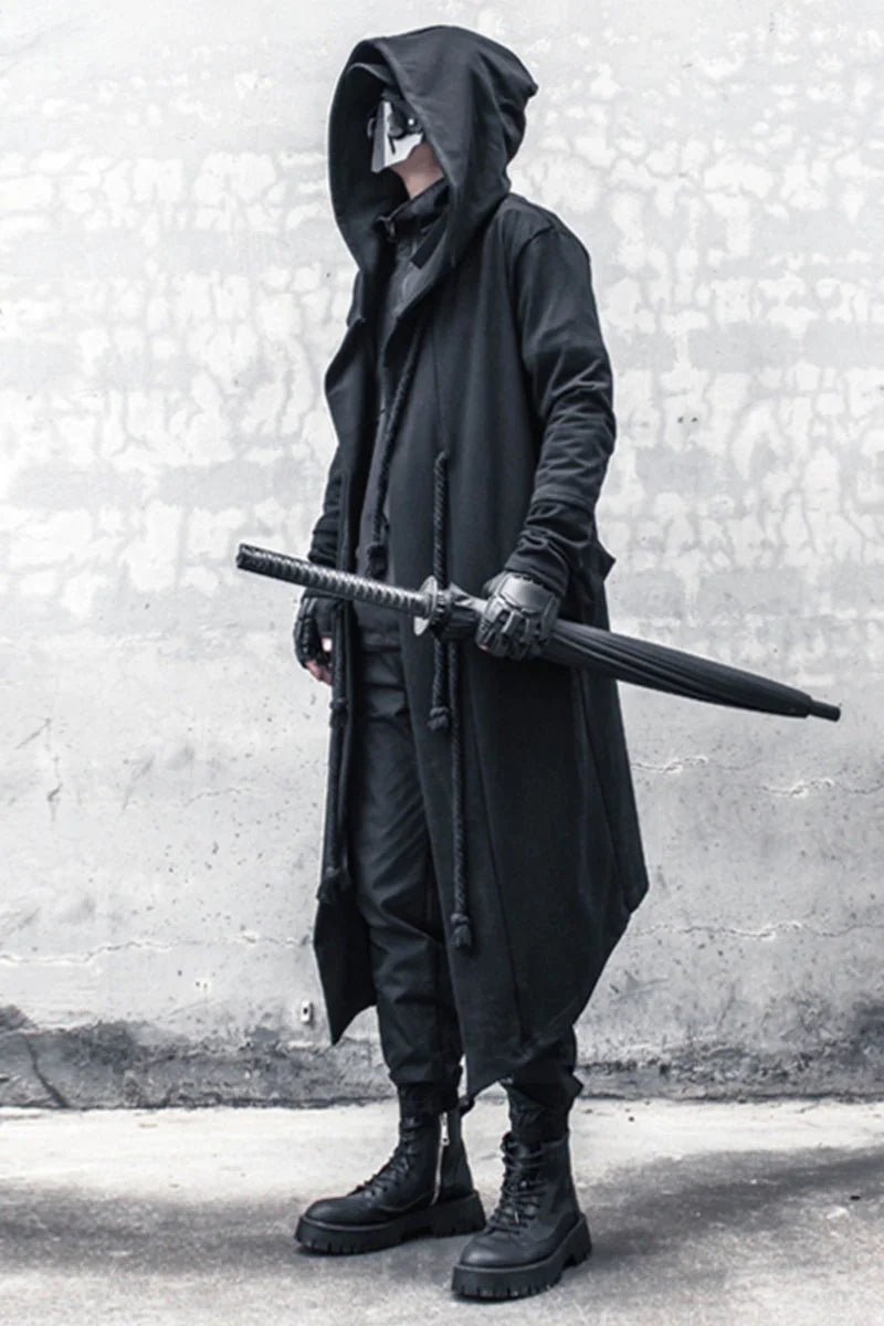 Abrigo largo negro estilo techwear para hombre con capucha Ver opciones