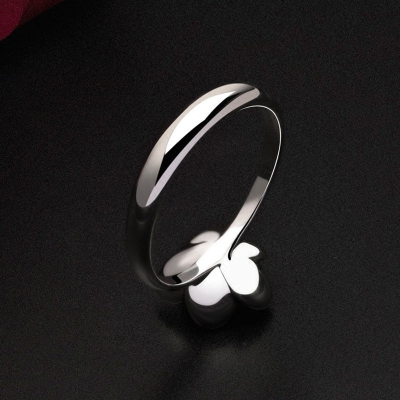 • Anillo grueso detrás, fino hacia la rosa: estética que resalta la flor