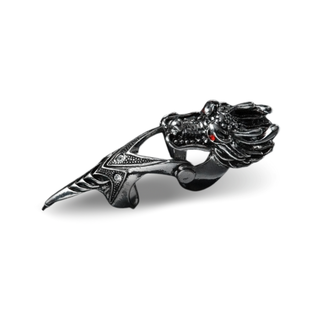 Más allá de añadir un toque de frescura oscura a tu mano, el anillo largo gótico es un excelente medio para añadir un toque personal a tu estilo. Es una joya rara y original que se ve muy poco a menudo. La cabeza de dragón con dos ojos rojos en la parte superior simboliza la audacia y la fuerza.