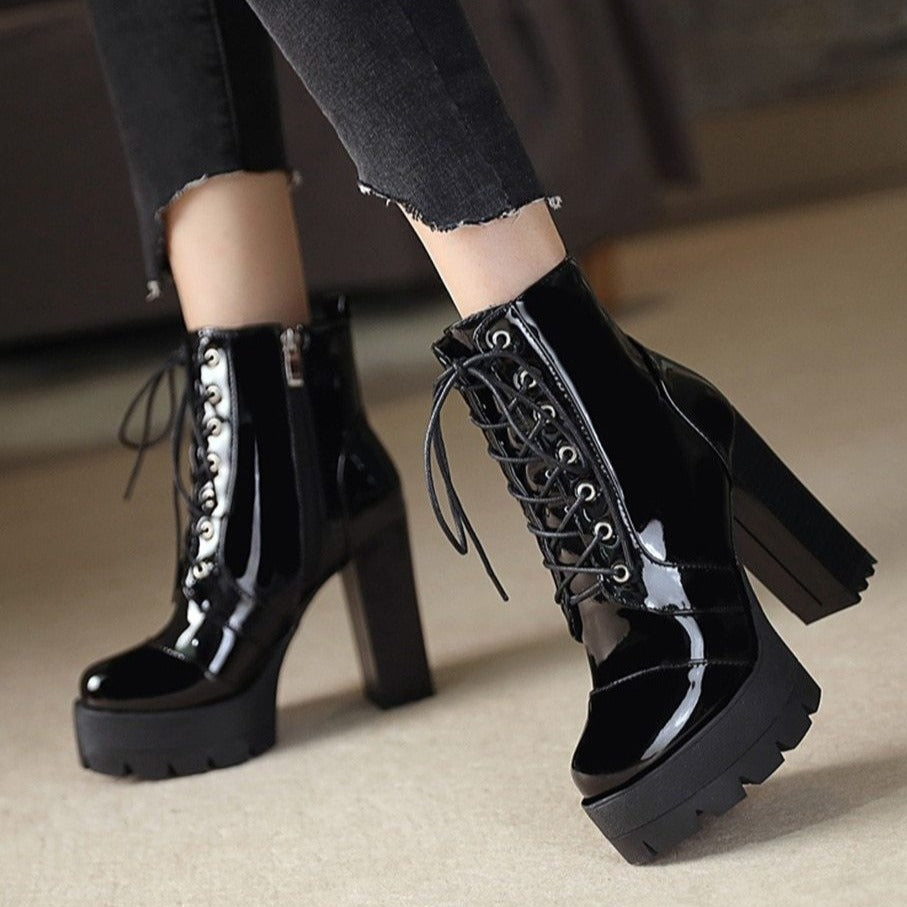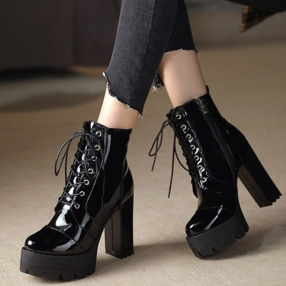 Para poder lucir un estilo oscuro, elegante y atemporal, este par de botines góticos ha sido hecho con un material liso y sólido. Además, tiene tacones altos, lo que te permitirá ganar unos diez centímetros más mientras te realza.
