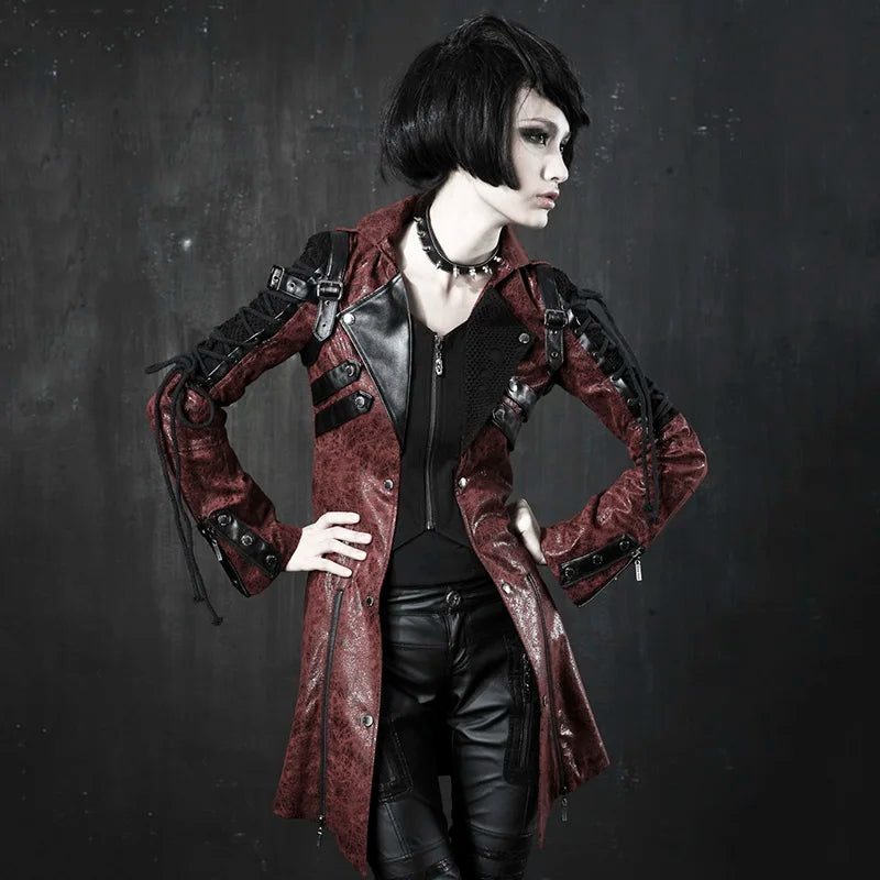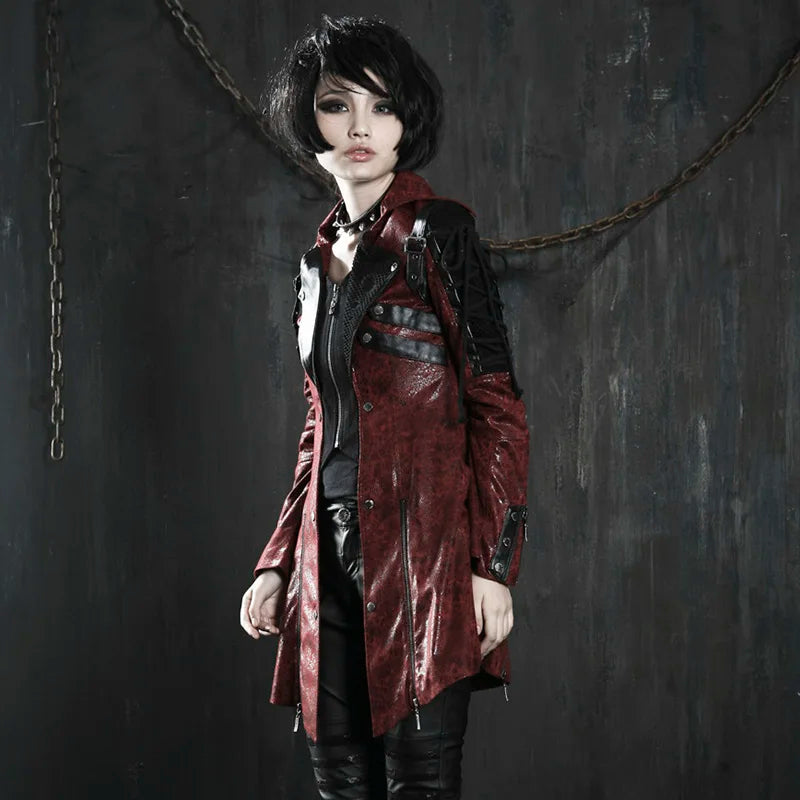 Chaqueta Gótica de Imitación de Cuero para Mujer PUNK RAVE Roja