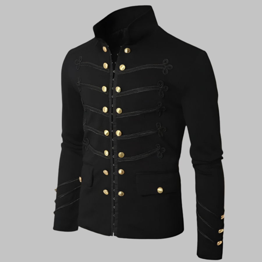 Chaqueta militar vintage negra con botones dorados estilo barroco Noir