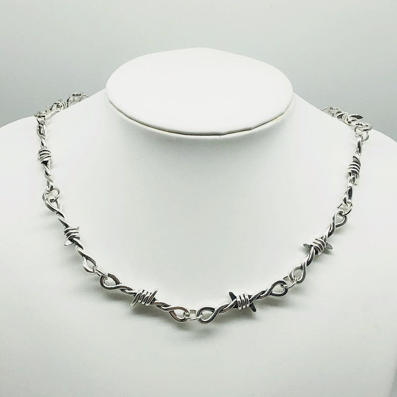Su estilo minimalista no lo hace menos audaz. Su cadena gótica imita el alambre de púas y adopta un estilo alternativo que va en contra de las modas clásicas.
