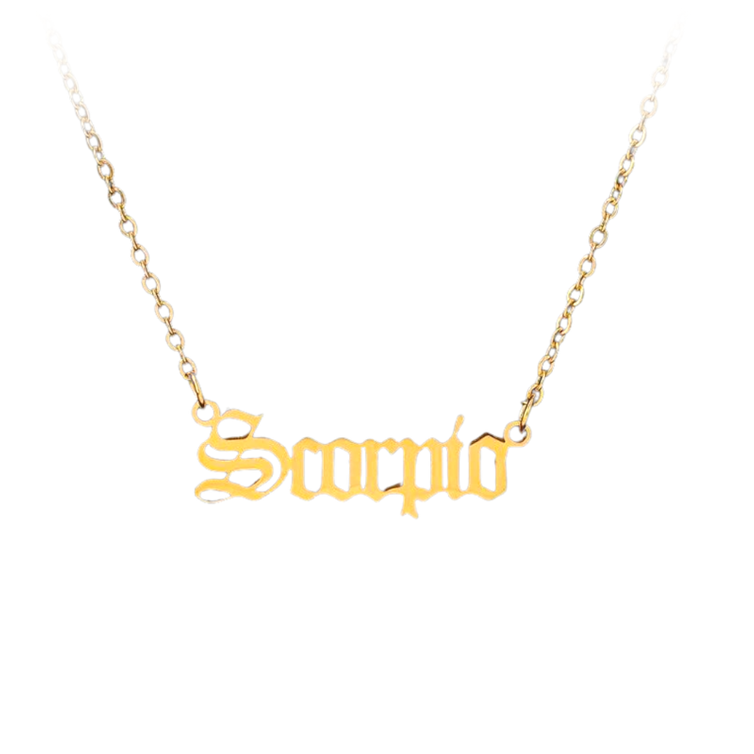 Este collar gótico con letra existe en varias formas de nombres de signos astrológicos. Así, según tu propio signo, es posible elegir el que corresponda.