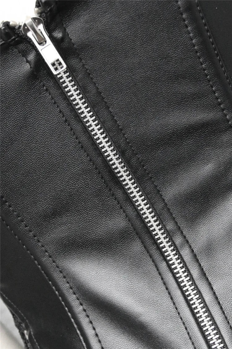 Corsé Negro de Cuero Sintético con Encaje Floral – Estilo Burlesque