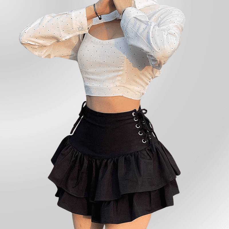 • Detalles de Diseño Sutiles: Los detalles sutiles, como la decoración con cordones, añaden un toque de originalidad a la falda, creando así un atuendo cautivador.