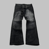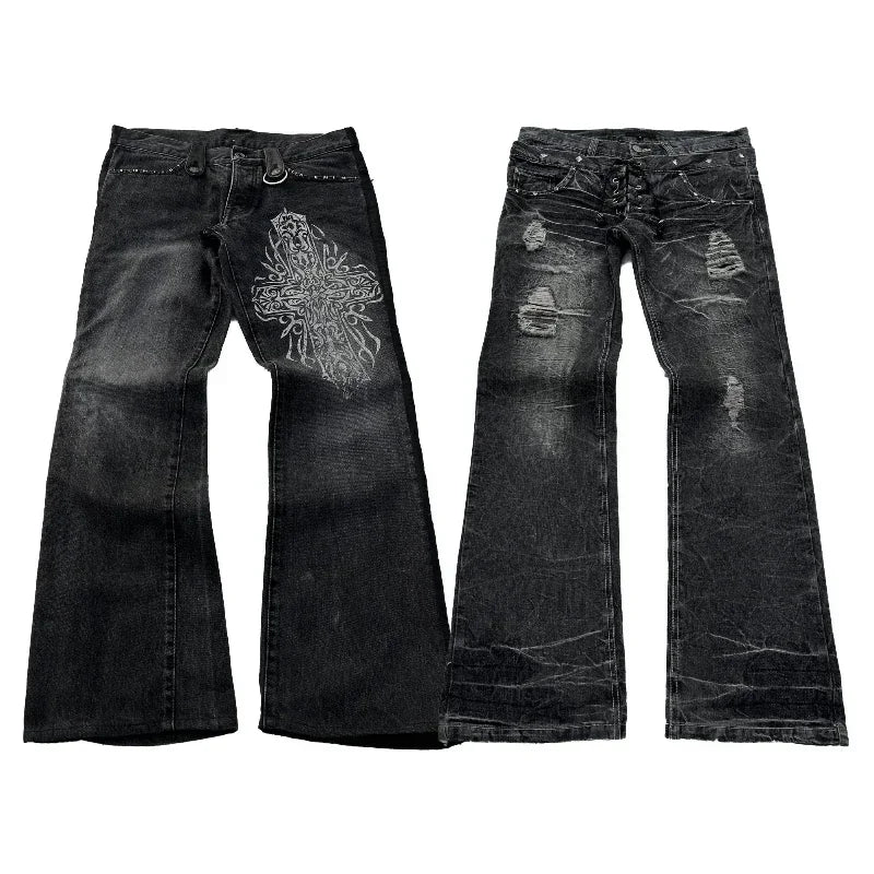 Jean flare negro efecto desgastado con bordados góticos Ver opciones