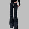 Jean negro de tiro bajo con ojales estilo grunge para mujer