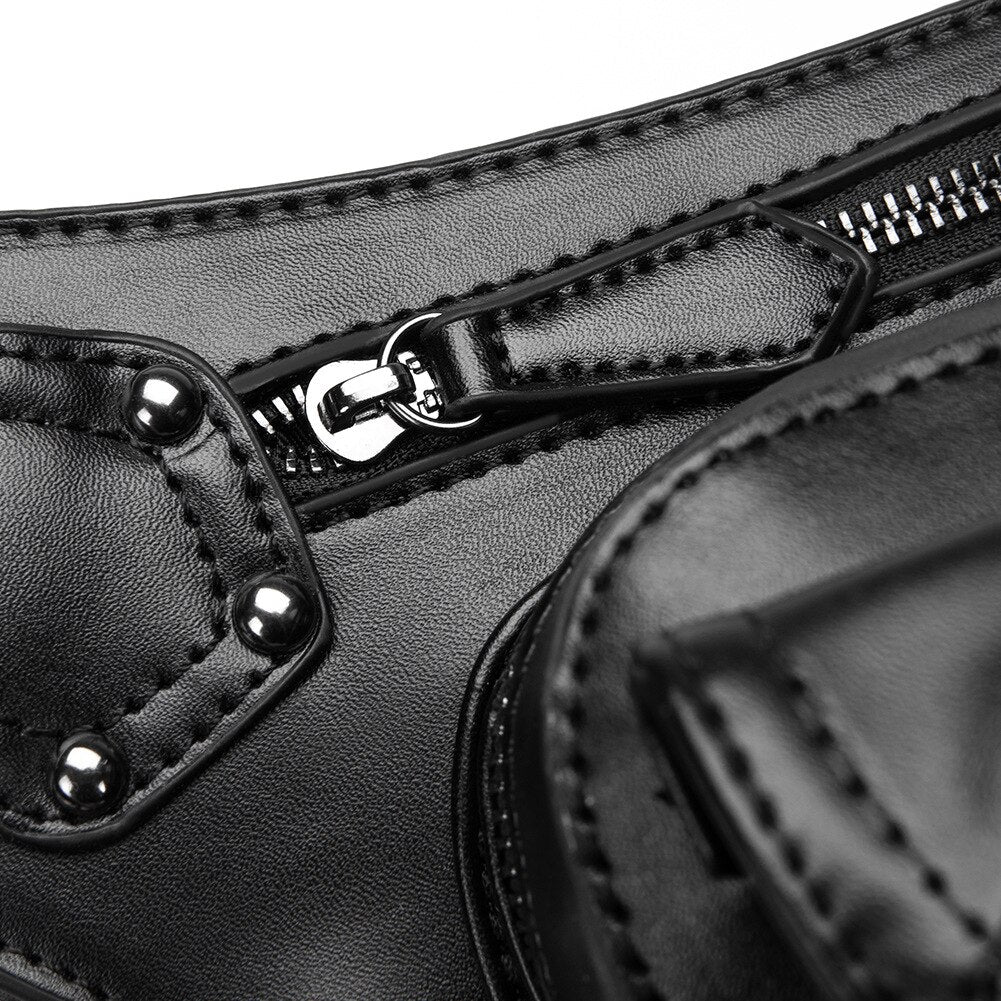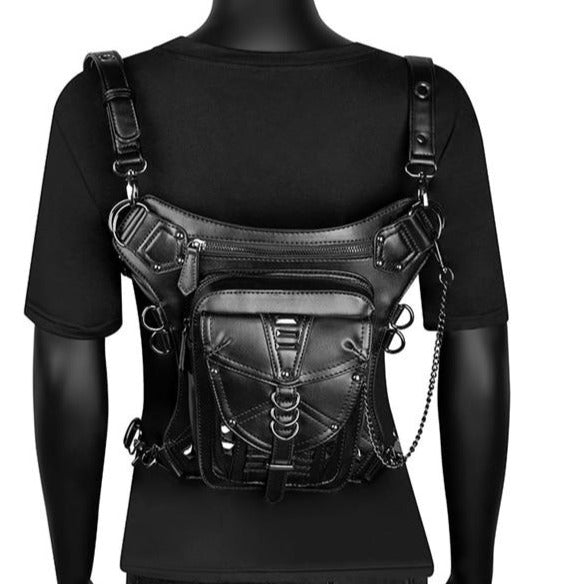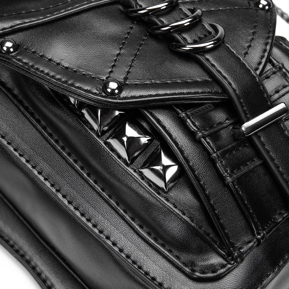La mochila gótica combina de manera hábil diferentes estilos alternativos para tener un diseño único en su género. Su forma y sus decoraciones le dan un aspecto y una complejidad agradable a la vista. Además, con sus correas originales, ofrece varias maneras de llevarla.