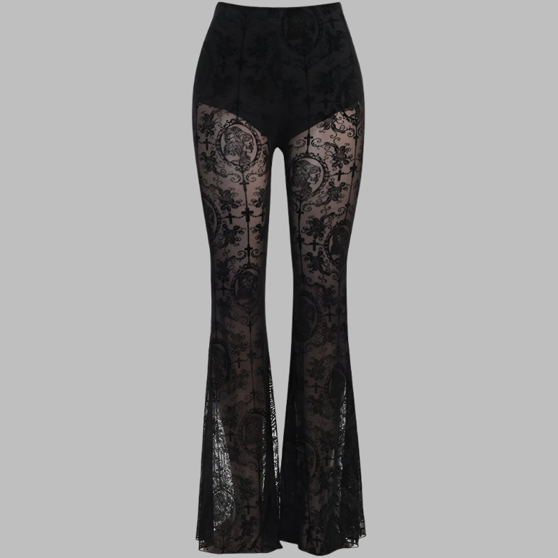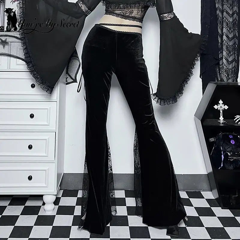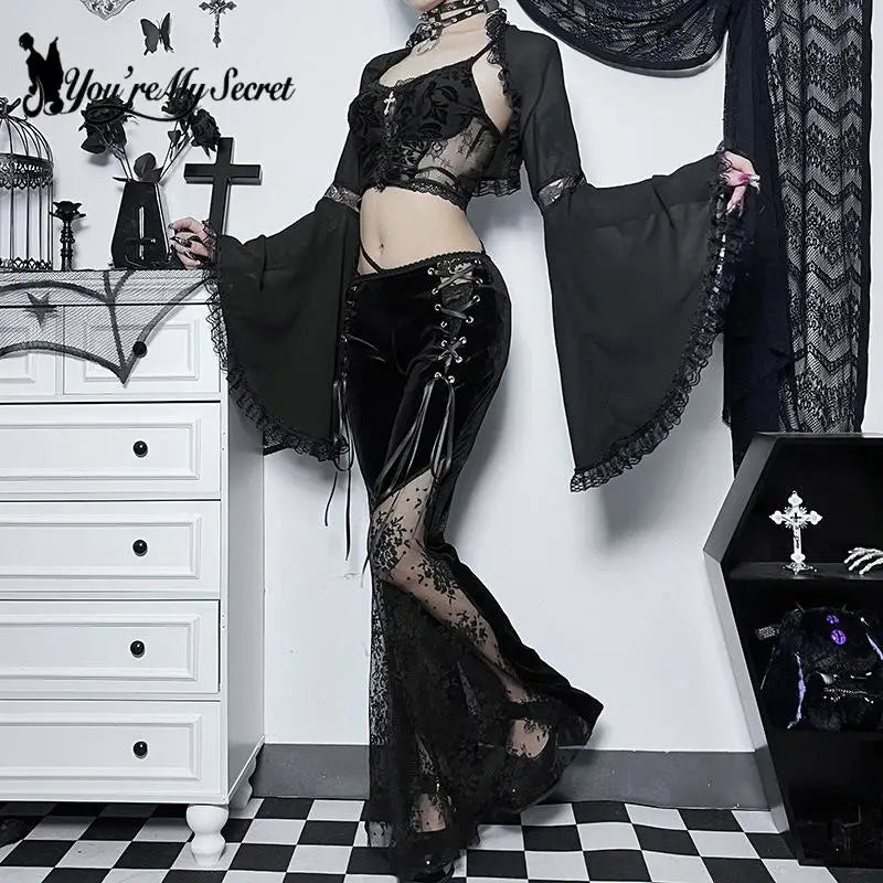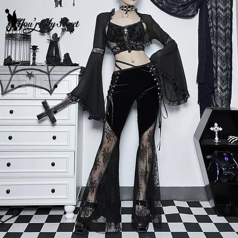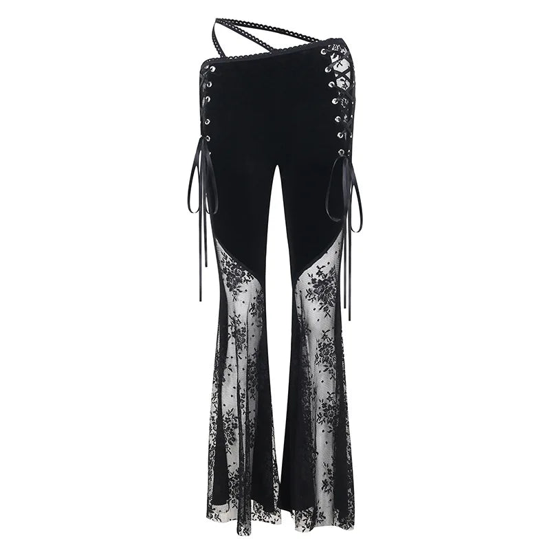 Pantalón gótico negro con abertura y detalles de encaje Ver opciones