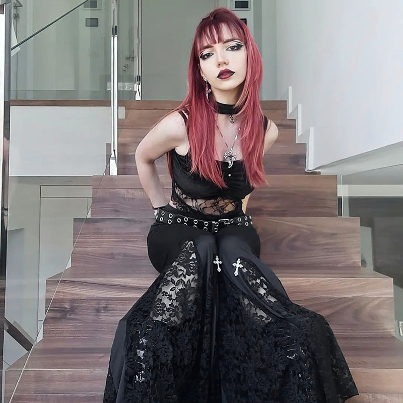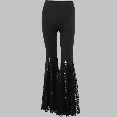 • Detalles Sutiles: Los detalles de decoración calados aportan una dimensión intrigante a este pantalón. Los adornos huecos añaden un sutil toque gótico que complementa perfectamente la estética general de la prenda.