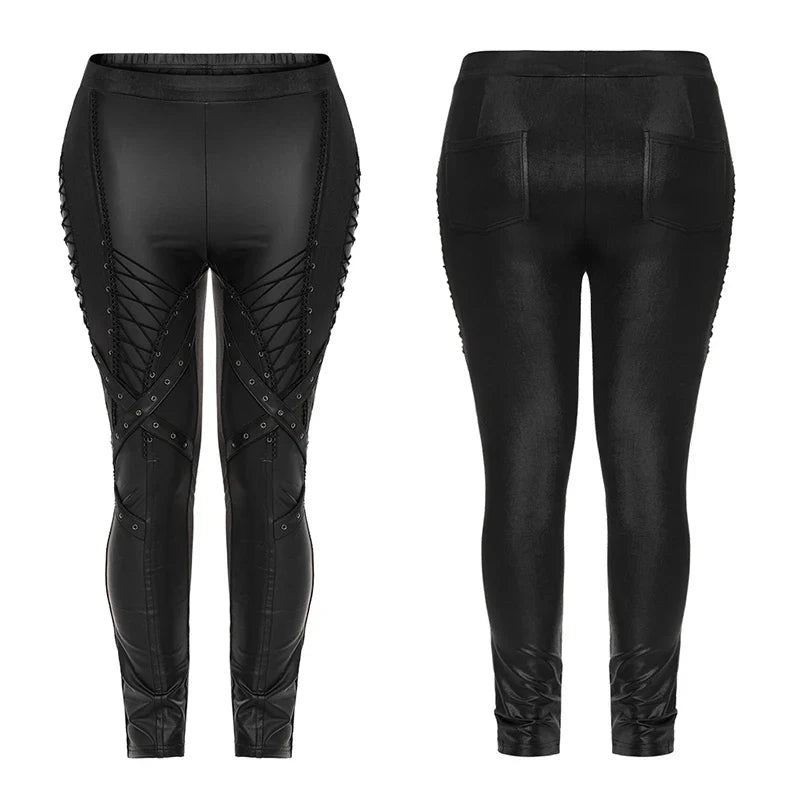 Pantalones Negros Góticos de Cuero Vegano PUNK RAVE