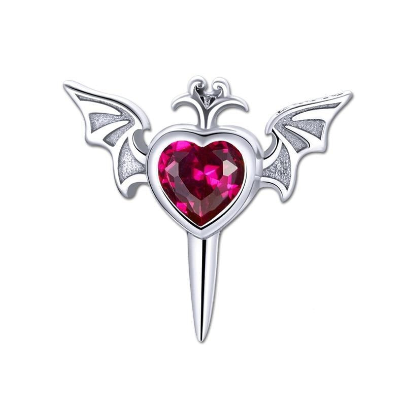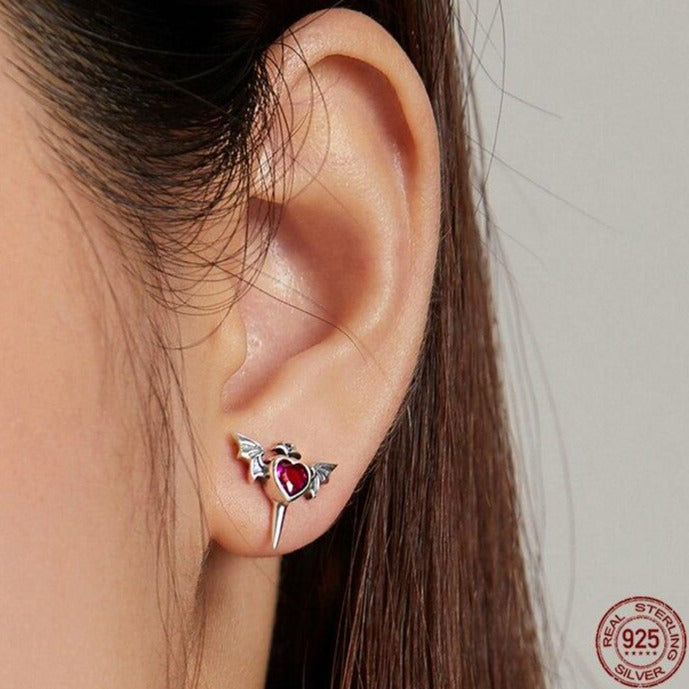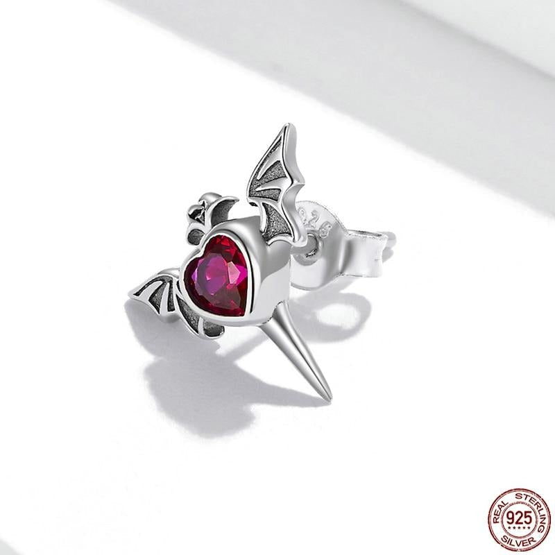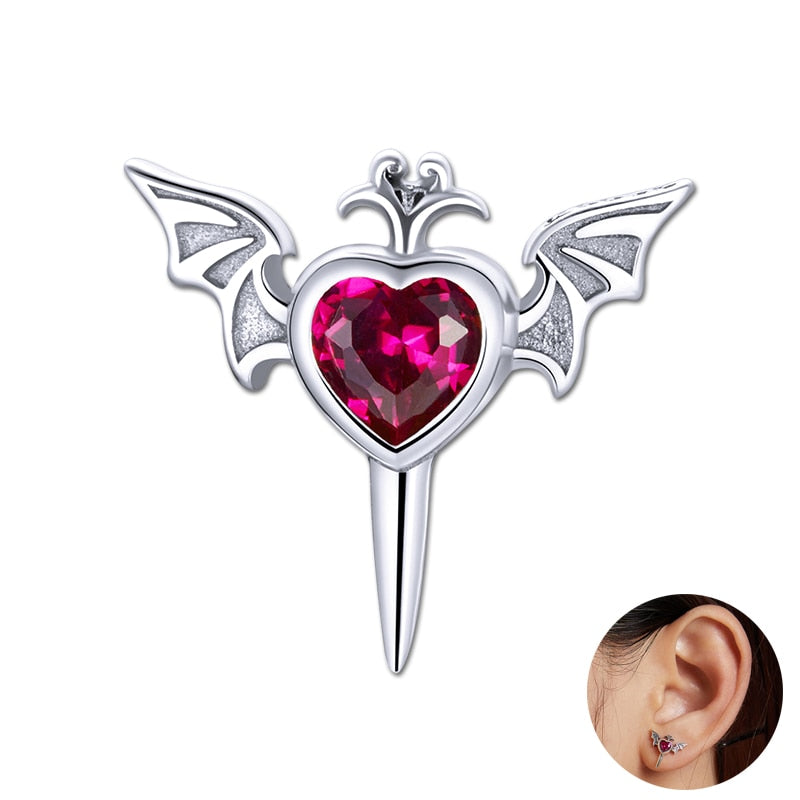 Pendiente Gótico de Plata con Corazón Alado
