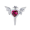 Los pendientes de plata de ley 925 se destacan por la forma que poseen. De hecho, esta joya adopta la forma de un corazón alado adornado con una punta. También están decorados con una piedra de color rosa.