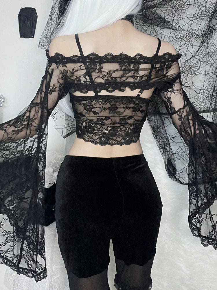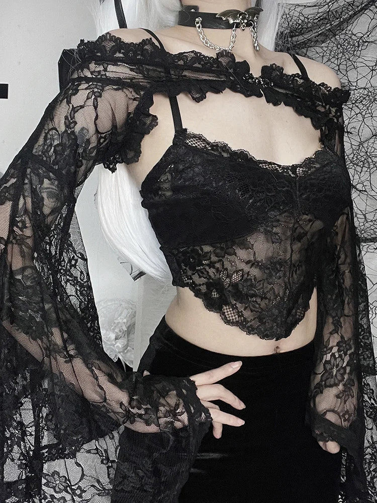 Top de encaje gótico para mujer