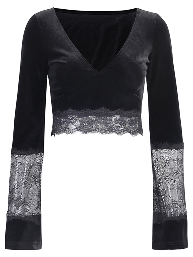 Top de encaje gótico negro