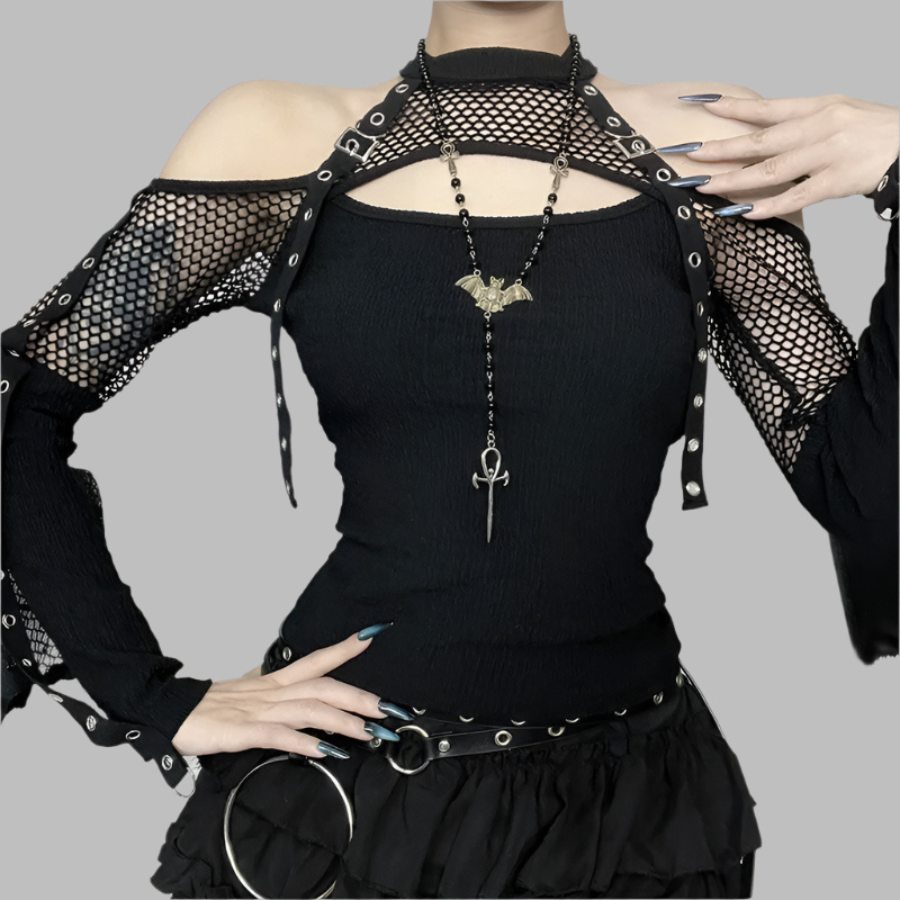 Top gótico de encaje negro sexy