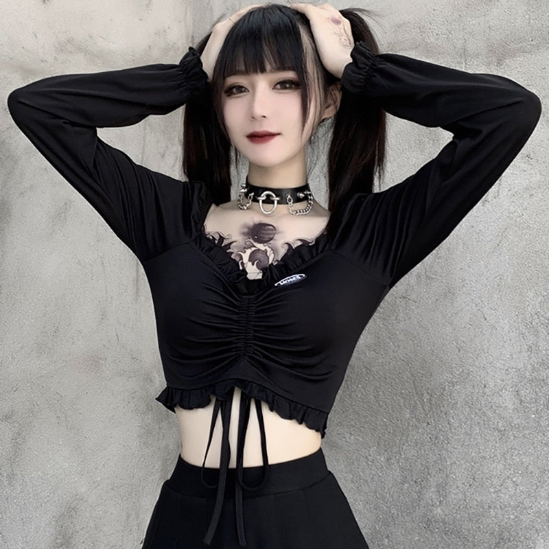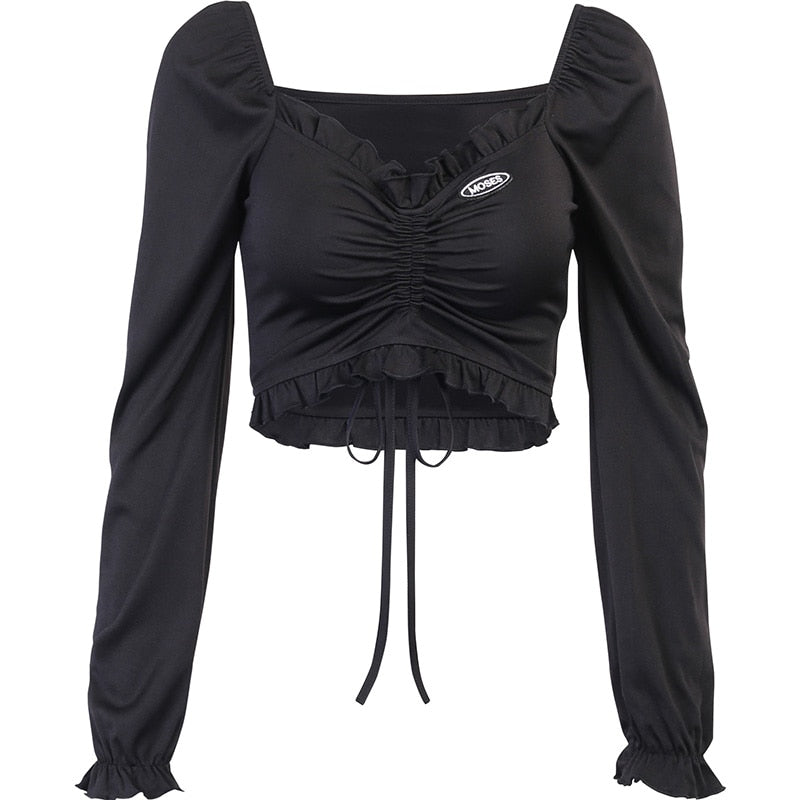 • Características: Mangas Largas, Sexy, Cordones, Crop Top, Fruncidos