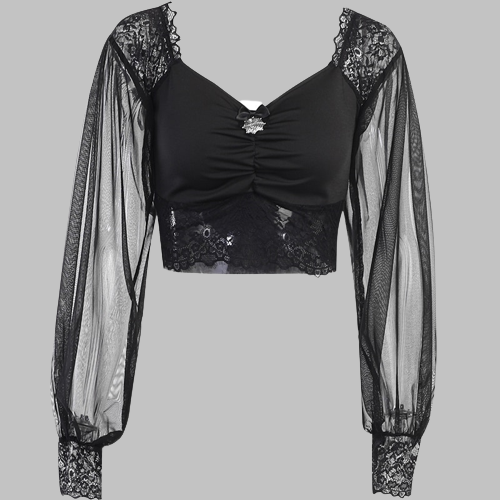 • Características: Mangas Largas, Sexy, Cordones, Crop Top, Fruncidos
