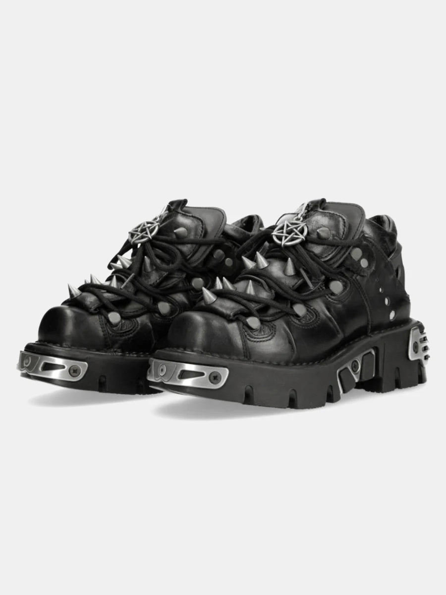 Zapatillas Negras Masivas con Detalles Metálicos – Estilo Cyber Goth
